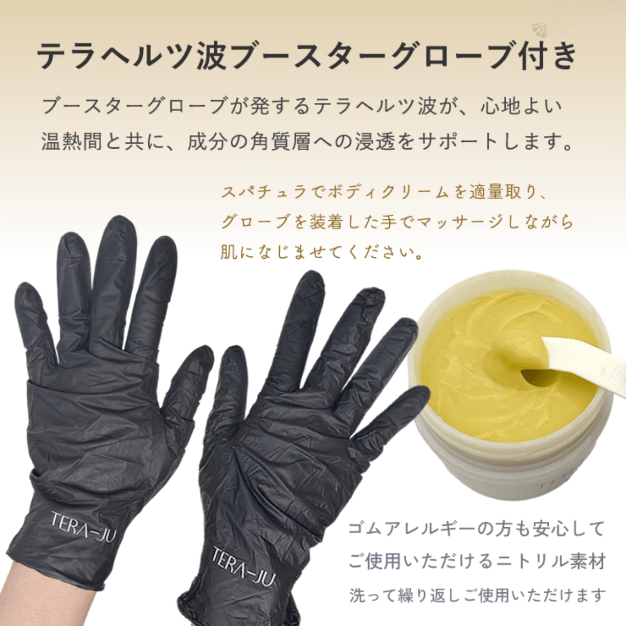※ブースターグローブが発するテラヘルツ波が、心地よい温熱間と共に、成分の角質層への浸透をサポートします。